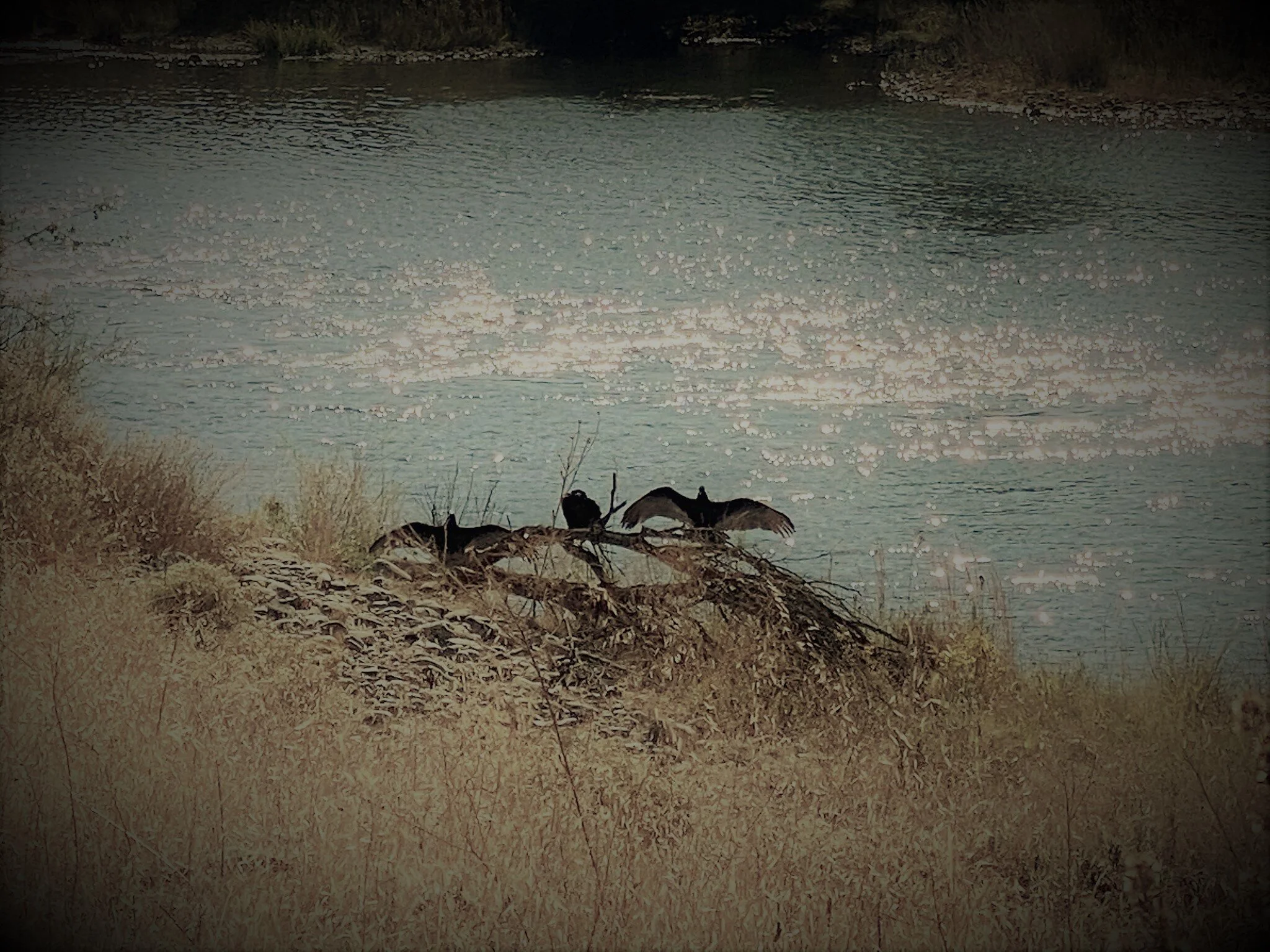 These magnificent turkey vultures sun their wings after feasting on the bodies of salmon who made their final journey to the river to spawn. The salmon becomes a vulture, a tree, the earth and everything that grows from it.